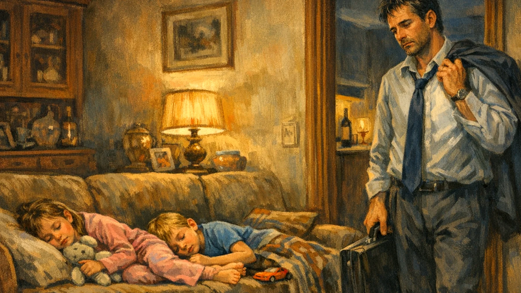 La porta si apre quando ormai le luci della casa sono accese da ore. I bambini hanno già cenato, il bagnetto è fatto, magari sono già in pigiama. Lui entra stanco, con la ventiquattrore pesante quanto il senso di colpa che si porta dietro ogni sera. Vorrebbe essere presente, ma tra riunioni infinite e traffico cittadino, quando arriva a casa sembra sempre troppo tardi per essere davvero un padre.